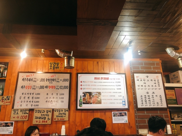 가장 인기가 많은 제주 삼겹살은 1인분에 13,000원인데 17,000원짜리 제주 흑돼지와 비교하였을 때 가성비가 좋은 듯해서 즐겨 먹습니다.